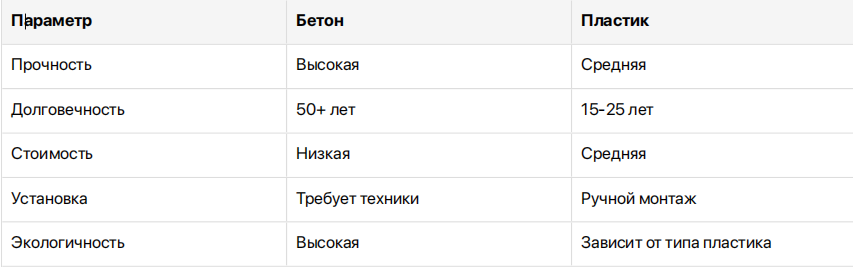 организации систем поверхностного водоотвода. Их преимущества - долговечность, прочность,